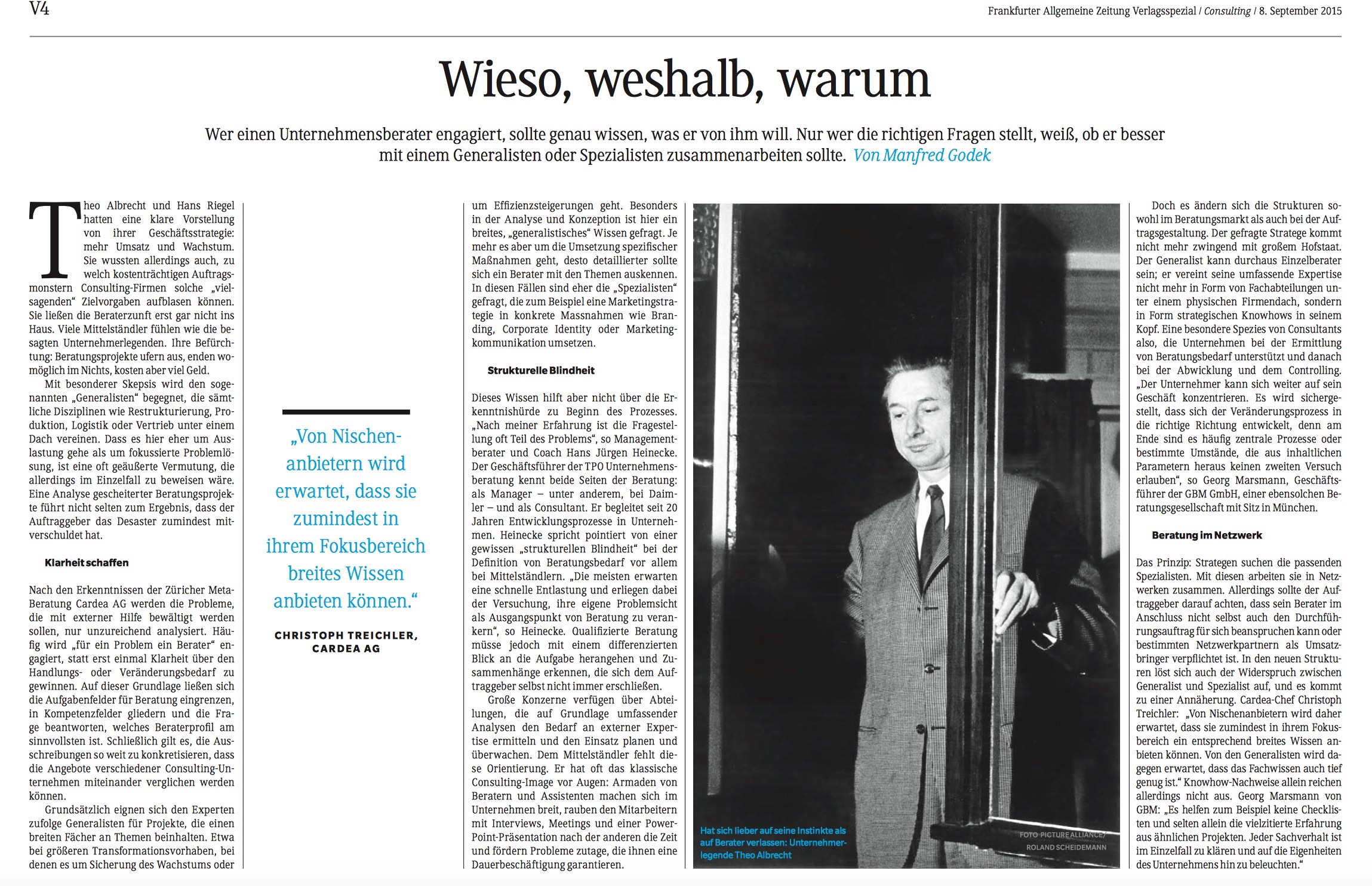 Georg Marsmann und Bianka Marsmann im Gespräch mit der Frankfurter Allgemeinen Zeitung zum Thema: "Sich wandelnde Strukturen im Beratermarkt".